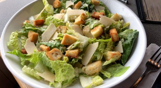 Romaine, shaved parmesan, parmesan garlic croutons, caesar dressing.